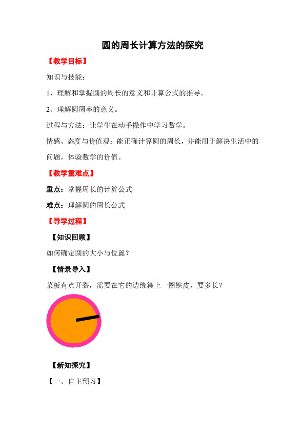 本课的重点是圆的周长的计算方法,难点是圆的周长的计算公式推导过程,主要是圆周率的理解及其推导。