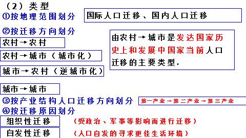 由农村→城市是发达国家历史上和发展中国家当前人口迁移的主要类型.