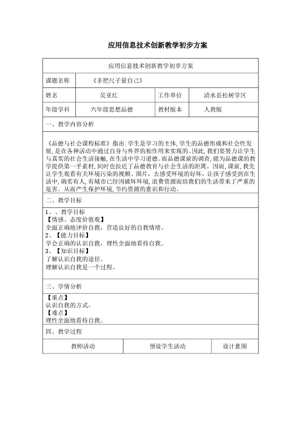 以下为《吴某某应用信息技术创新教学初步方案》的无排版文字预览,完整格式请下载