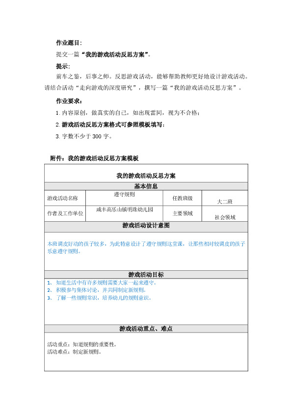 前车之鉴,后事之师。反思游戏活动,能够帮助教师更好地设计游戏活动。请结合活动“走向游戏的深度研究”,撰写一篇“我的游戏活动反思方案”。