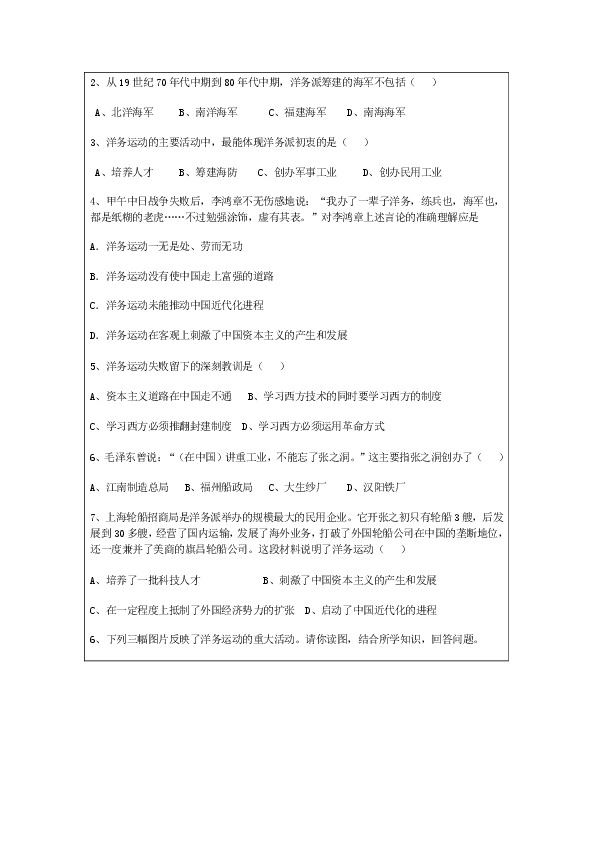 6、下列三幅图片反映了洋务运动的重大活动。请你读图,结合所学知识,回答问题。