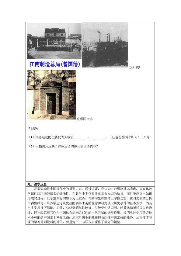 3、体会洋务运动在中国近代化进程中的深远影响。