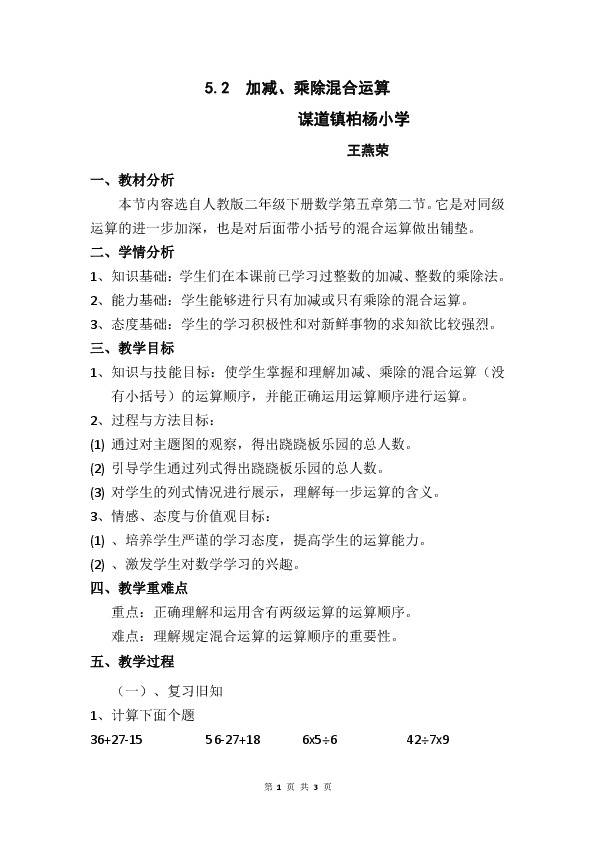 以上为《王某某 加减乘除混合运算 教学设计》的无排版文字预览,完整格式请下载