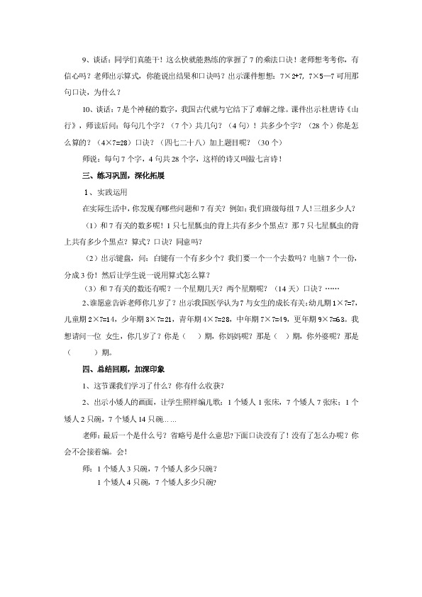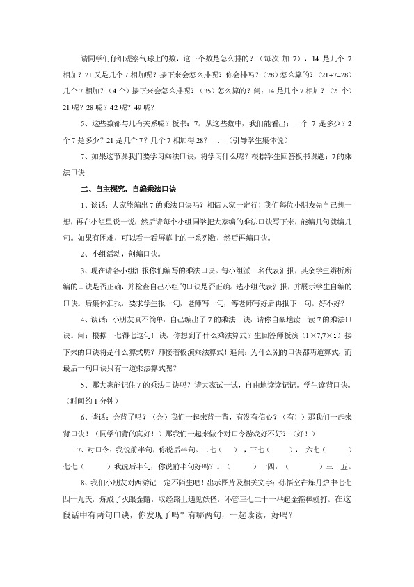 以上为《7的乘法口诀教学设计》的无排版文字预览,完整格式请下载