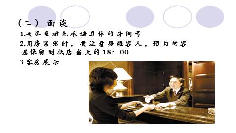 2.用房紧张时,要注意提醒客人,预订的客房保留到抵店当天的18:00