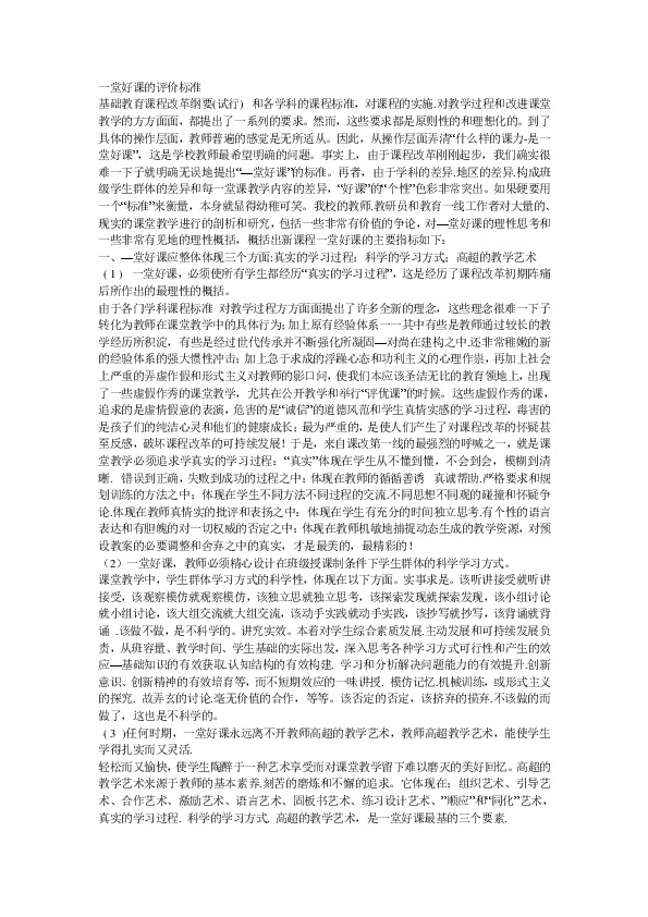 以下为《一堂好课的评价标准》的无排版文字预览,完整格式请下载