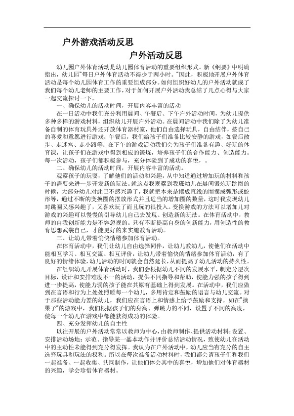以下为《户外游戏活动反思》的无排版文字预览,完整格式请下载