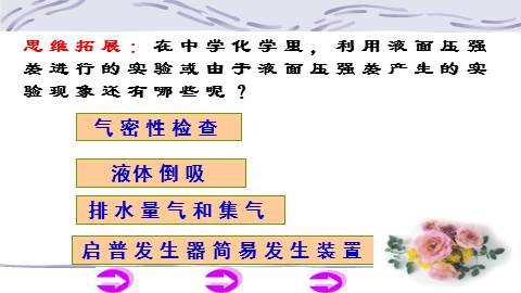 思维拓展:在中学化学里,利用液面压强差进行的实验或由于液面压强差产生的实验现象还有哪些呢?