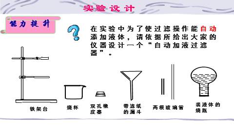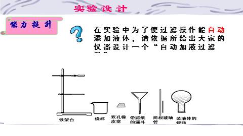在实验中为了使过滤操作能自动添加液体,请依据所给出大家的仪器设计一个“自动加液过滤器”。