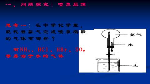 思考一:在中学化学里, 能代替氨气完成喷泉实验的气体有哪些?