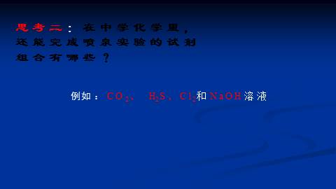 思考二:在中学化学里, 还能完成喷泉实验的试剂组合有哪些?