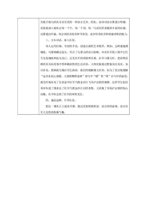 把这一课真正上成读书课,通过反复情感朗读,读出诗的意境,读出红军大无畏的英雄气概。