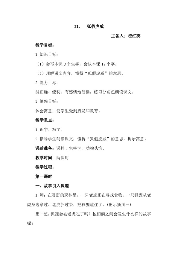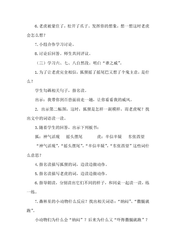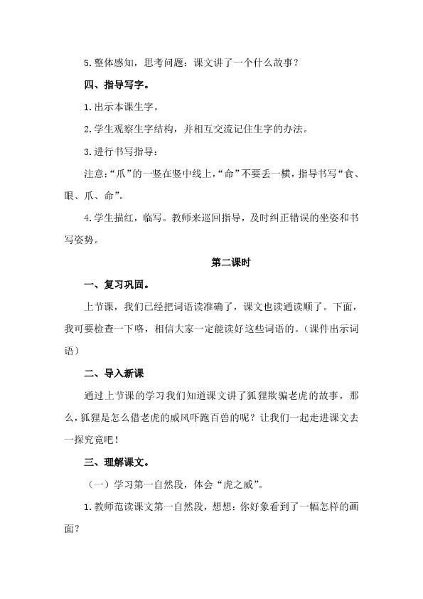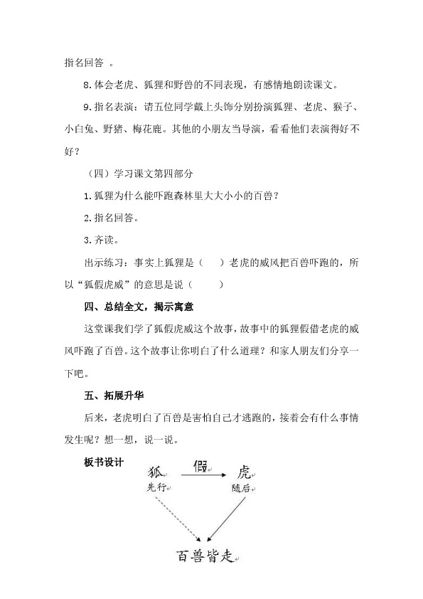 (2)理解课文内容,懂得“狐假虎威”的意思。
