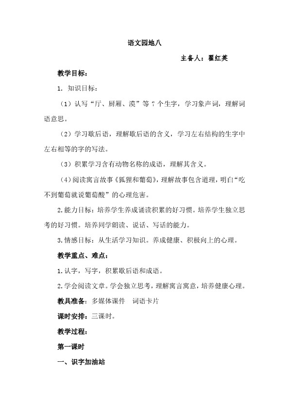 2.学会阅读文章。学会独立思考,理解寓言寓意,培养健康心理。
