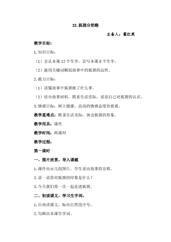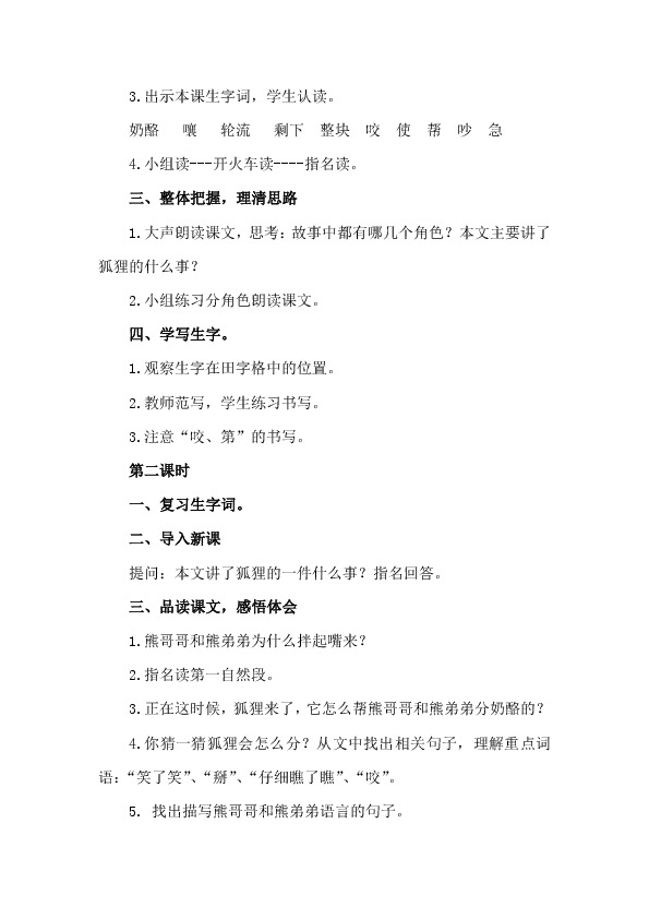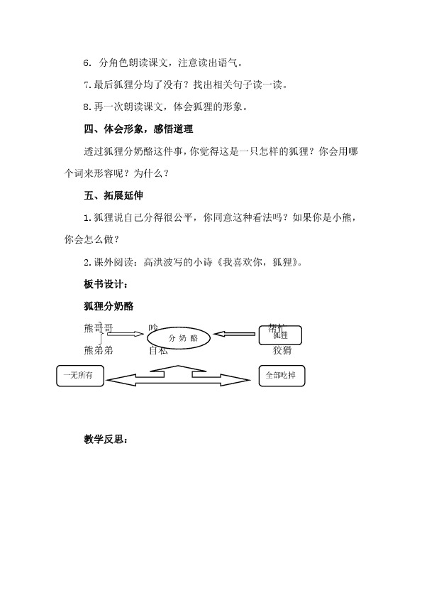 (2)结合故事材料,联系生活实际,说说自己对狐狸的认识。
