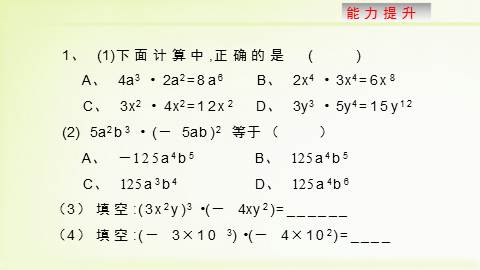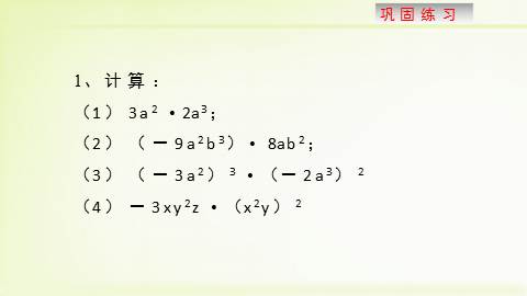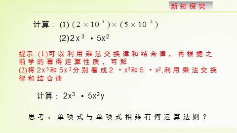 提示:(1)可以利用乘法交换律和结合律,再根据之前学的幂得运算性质,可解