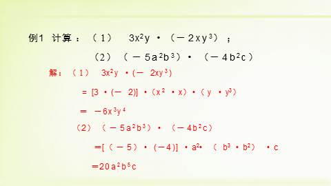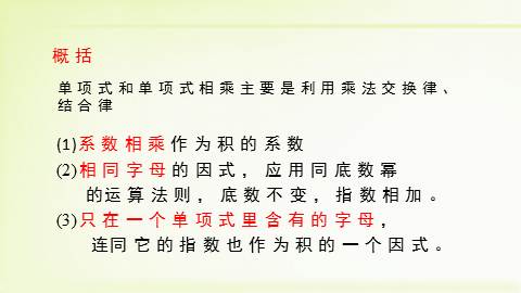 单项式和单项式相乘主要是利用乘法交换律、结合律