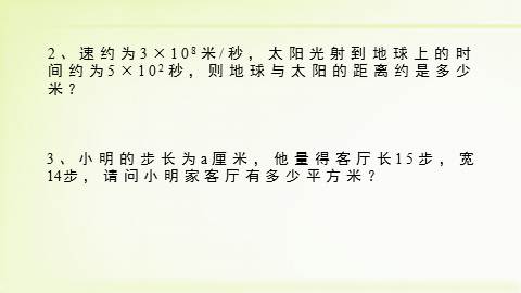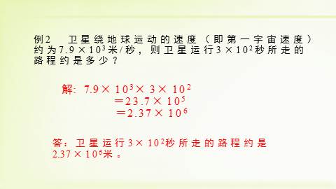例2 卫星绕地球运动的速度(即第一宇宙速度)约为7.9XXXXX103米/秒,则卫星运行3XXXXX102秒所走的路程约是多少?