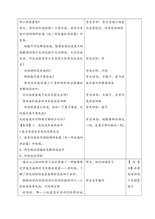学生分析:是有自发进行的氧化还原反应,并且碳能够导电。