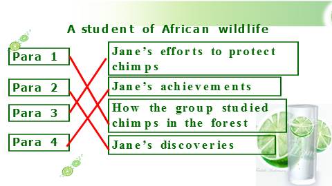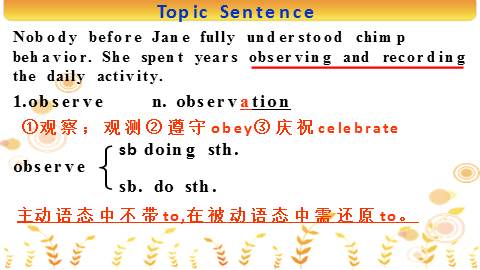 Jane Goodall has studied chimps for many years to help people understand how much they behave like human. ______ (watch) a family of chimps wake up is our first activity. For forty years Jane Goodall has been outspoken ______ making the rest of the world understand and respect the life of these animals. She has argued that wild animals should not be used for __________ (entertain). She _______ (lead) a busy life now. She ______ (激励) those who want to cheer the achievements of women.