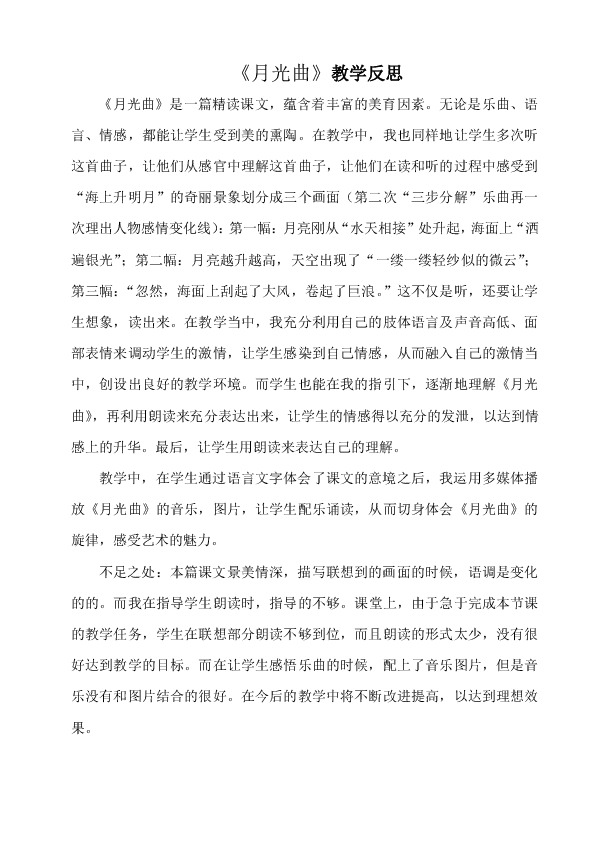 以下为《月光曲教学反思》的无排版文字预览,完整格式请下载