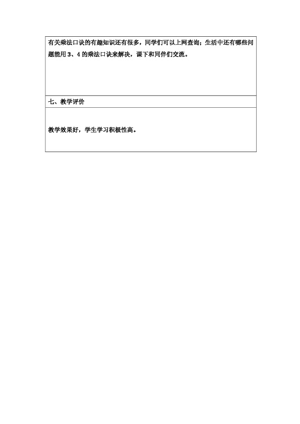 2.能利用2、3、4的乘法口诀的知识解释一些简单的生活问题,培养学生自主探究、实践操作、合作交流的学习能力。
