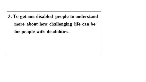 3. To get non-disabled people to understand more about how challenging life can be for people with disabilities.