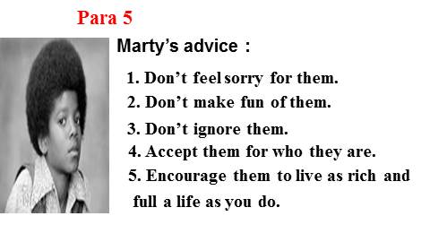 They can accept people with disabilities like Marty for who they are rather than focus on their disability. They can encourage them to live rich and full lives.