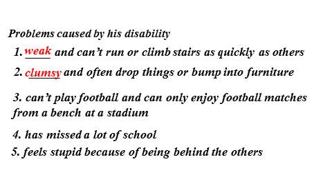 Missing lots of school, not being able to run around and play sports like other boys at his age, people not understanding that he has a disability.