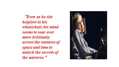 “Even as he sits helpless in his wheelchair, his mind seems to soar ever more brilliantly across the vastness of space and time to unlock the secrets of the universe.”