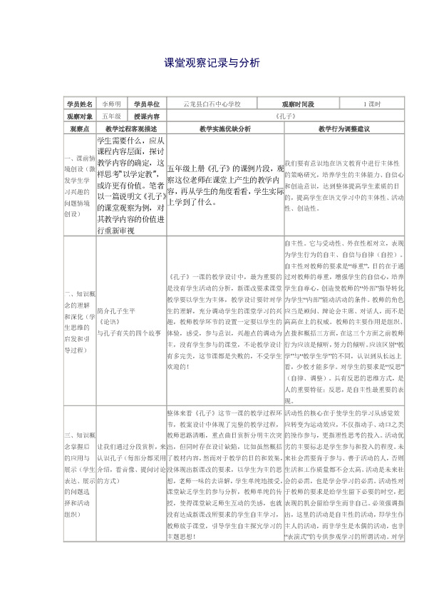 五年级上册《孔子》的课例片段,观察这位老师在课堂上产生的教学内容,再从学生的角度看看,学生实际上学到了什么。