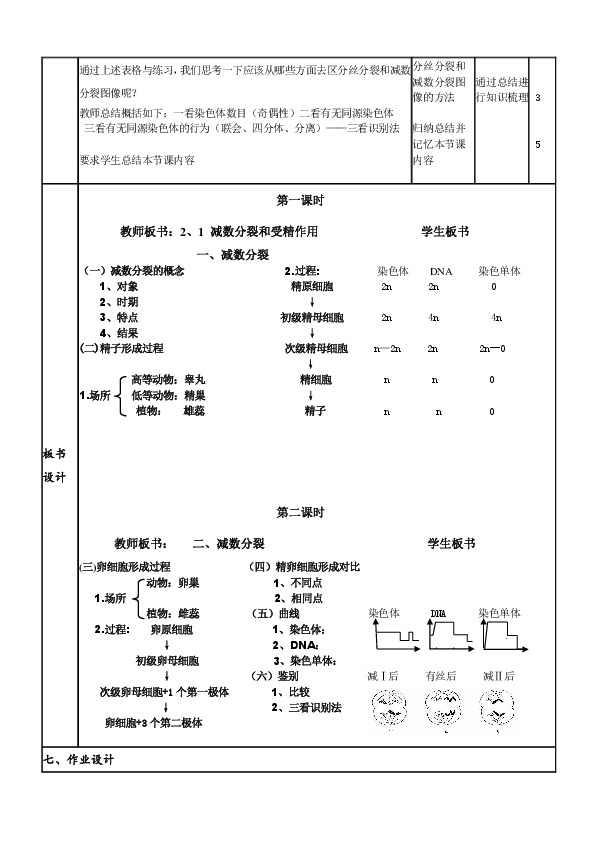 教师板书:2、1 减数分裂和受精作用 学生板书