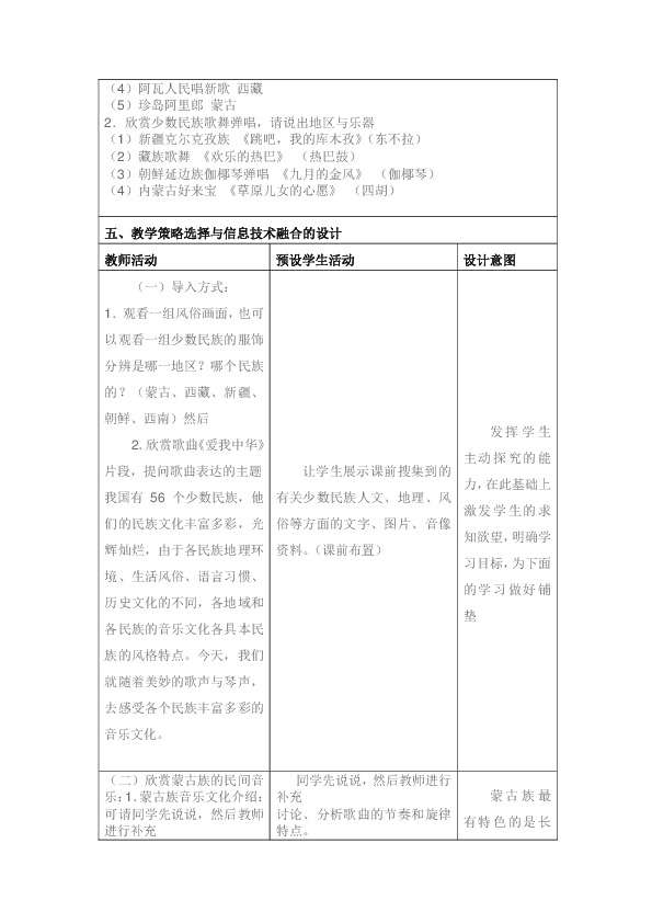 以下为《中国少数民族音乐教学设计》的无排版文字预览,完整格式请下载