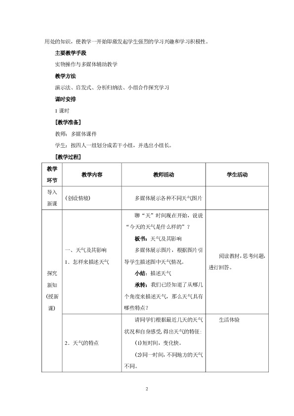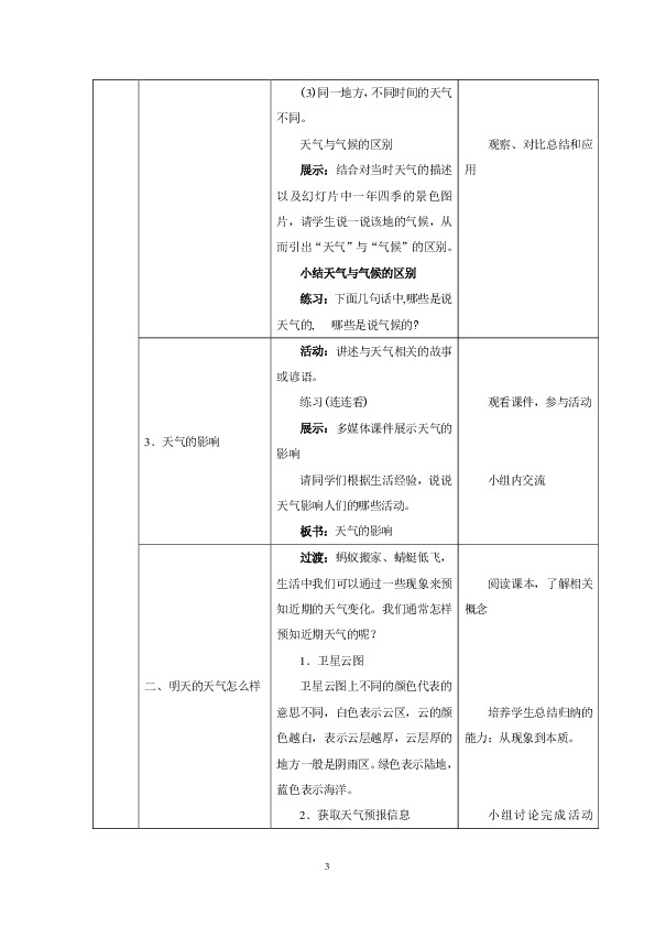 以上为《第三章 第一节 多变的天气(第1课时)教学设计》的无排版文字预览,完整格式请下载