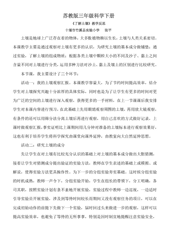 以下为《《了解土壤》反思(张平)》的无排版文字预览,完整格式请下载
