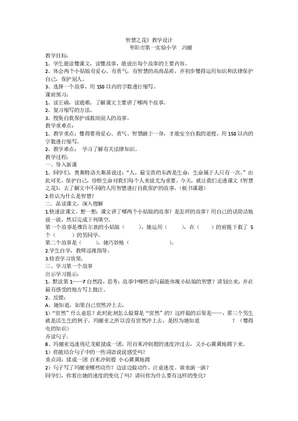 以下为《智慧之花》教学设计》的无排版文字预览,完整格式请下载