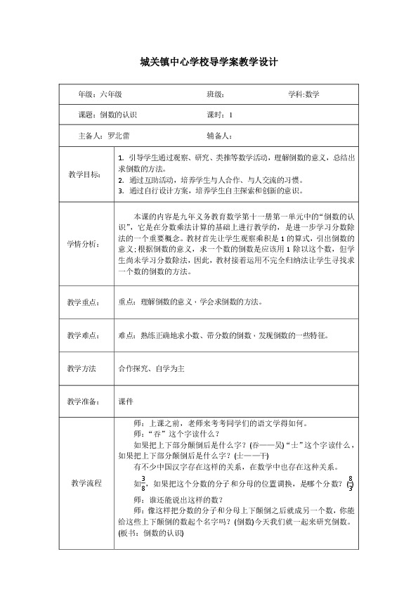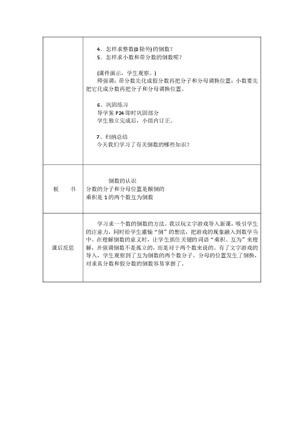 课题:倒数的认识 课时:1