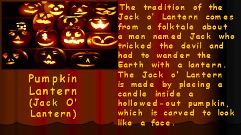 The tradition of the Jack o' Lantern comes from a folktale about a man named Jack who tricked the devil and had to wander the Earth with a lantern. The Jack o' Lantern is made by placing a candle inside a hollowed-out pumpkin, which is carved to look like a face.