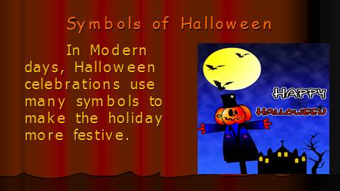 In Modern days, Halloween celebrations use many symbols to make the holiday more festive.