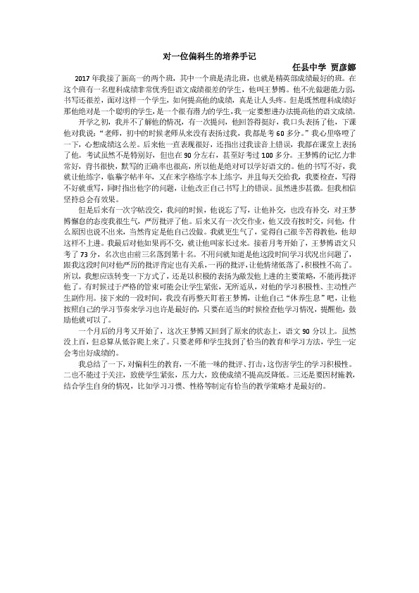 任县中学 贾某某