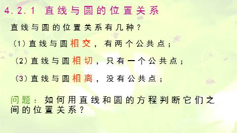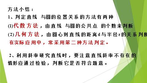 (1)代数方法,由直线 与圆的公共点 的个数来判断