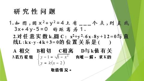 1.如图,圆x2+y2=4上有___个点,到直线3x+4y-5=0 的距离为1.