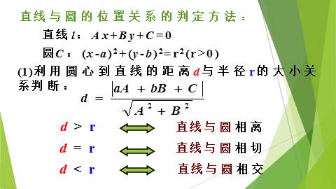(1)利用圆心到直线的距离d与半径r的大小关系判断: