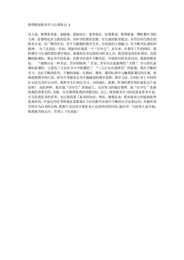 以下为《教师继续教育学习心得体会 3》的无排版文字预览,完整格式请下载