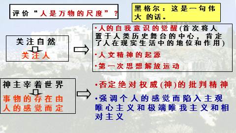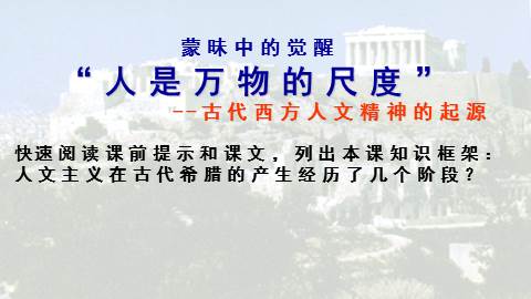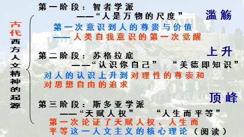 1.人类自我意识的第一次觉醒; 2.古代西方是人文精神的起源