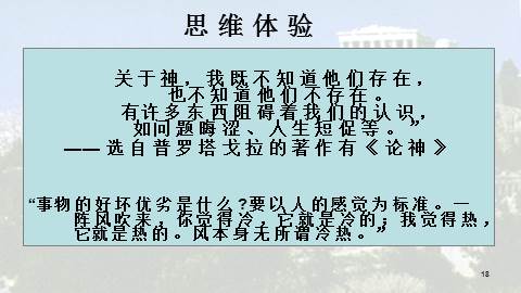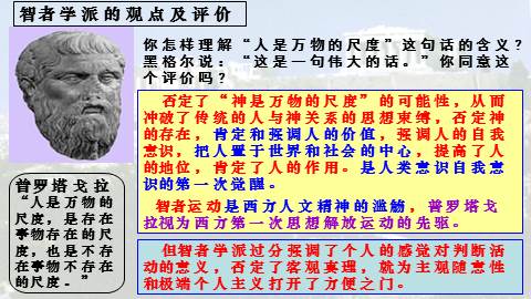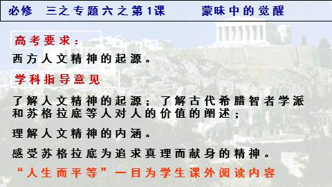 了解人文精神的起源;了解古代希腊智者学派和苏格拉底等人对人的价值的阐述;