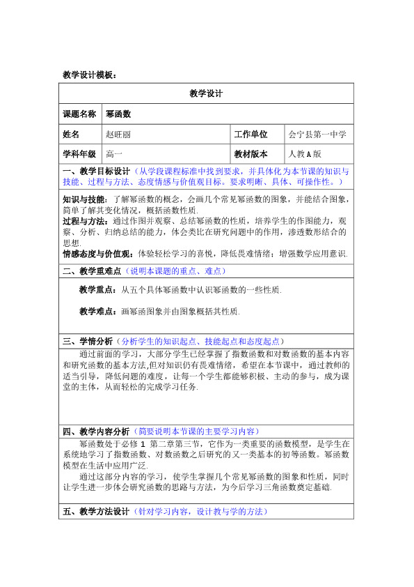 以下为《幂函数教学设计》的无排版文字预览,完整格式请下载
