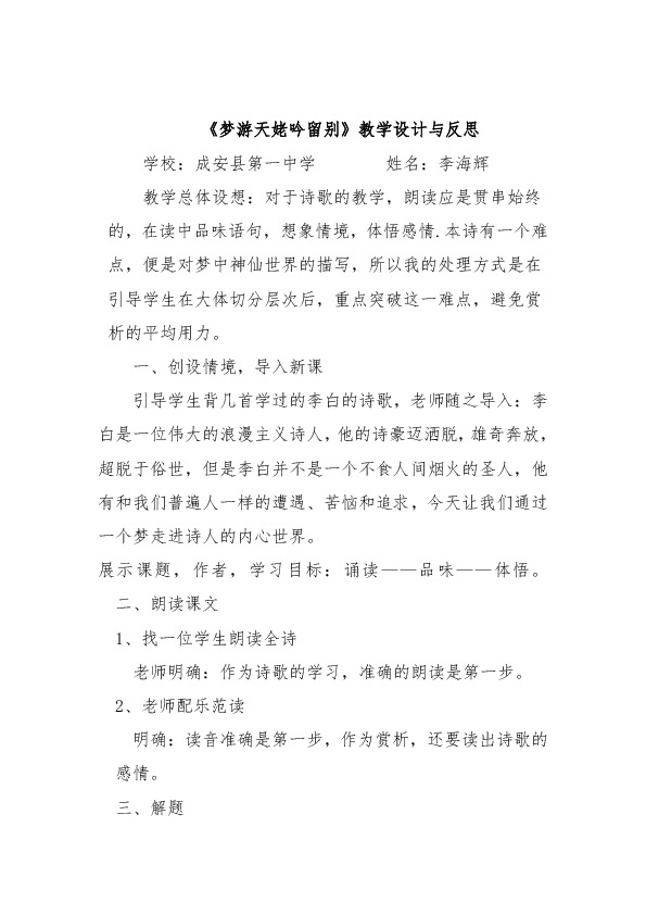 以上为《高中语文《梦游天姥吟留别》教学设计与反思》的无排版文字预览,完整格式请下载