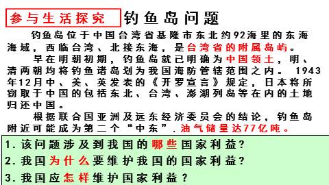 根据联合国亚洲及远东经济委员会的结论,钓鱼岛附近可能成为第二个“中东”,油气储量达77亿吨。