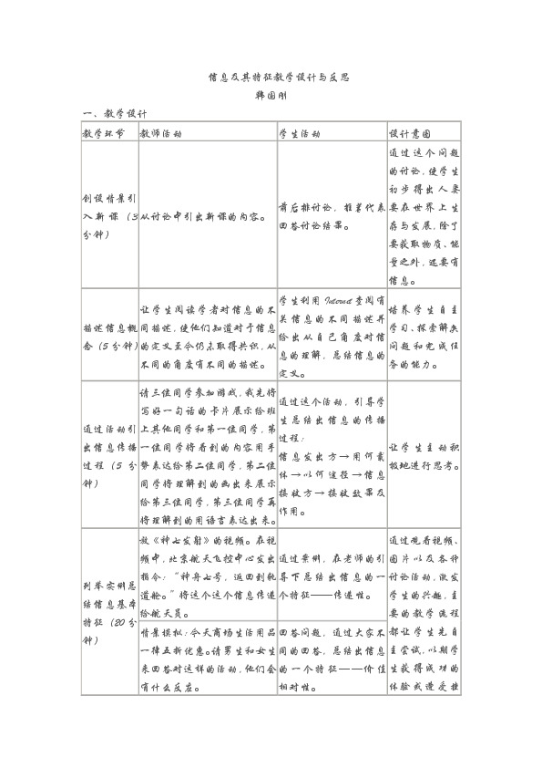 以上为《信息及其特征教学设计与反思》的无排版文字预览,完整格式请下载